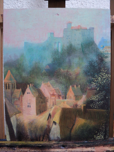 La Pie sur le gibet (2017, d'après le détail ci-dessus) Acrylique sur panneau de bois, 19 x 24 cm |
