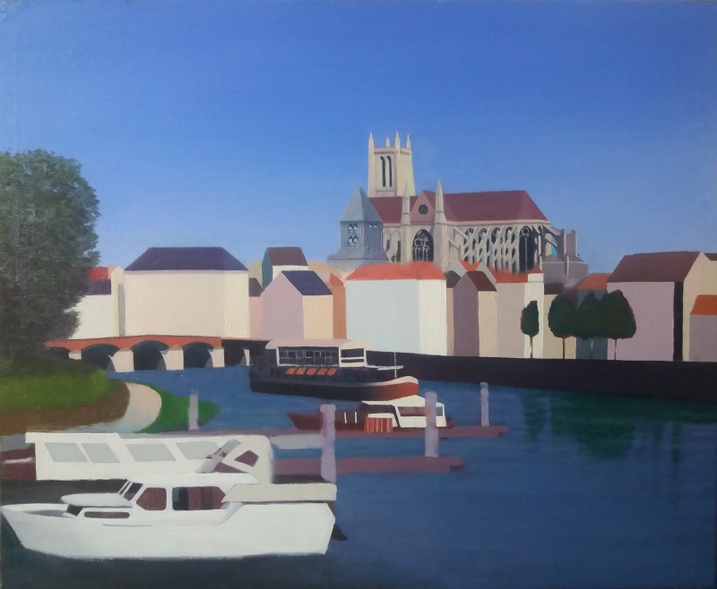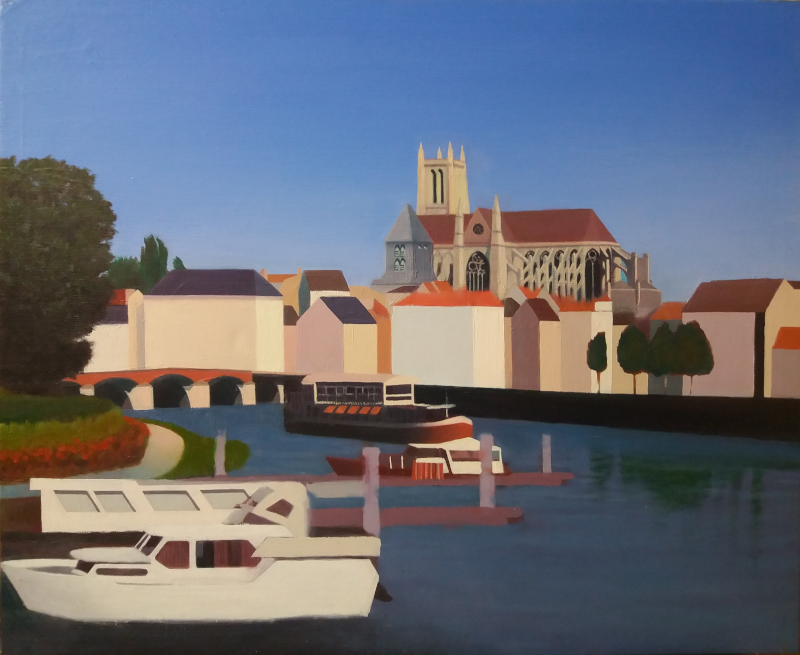 ![]() Meaux : la halte nautique sur la Marne et la cathédrale. Photographie prise par P.poschadel le 22 juillet 2012 (source : Commons) |